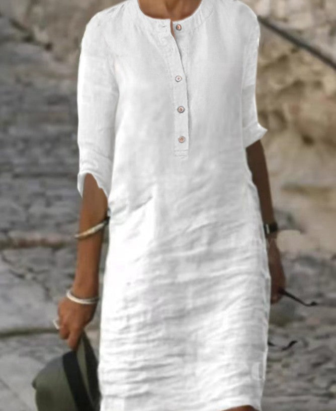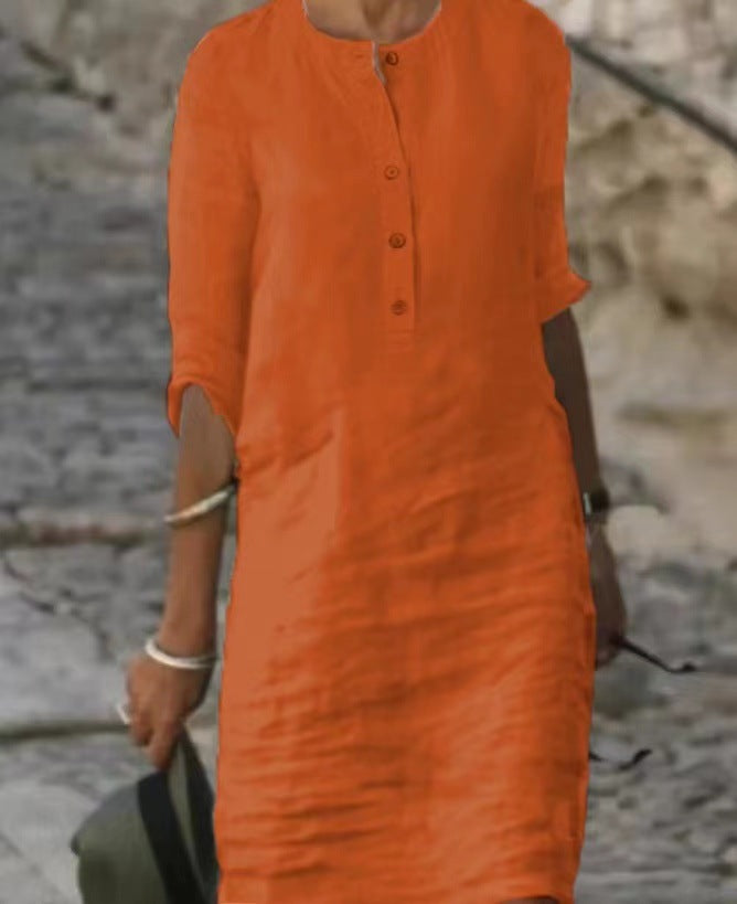 Uveng Spring Cotton And Linen Long-sleeved Dress Dresses