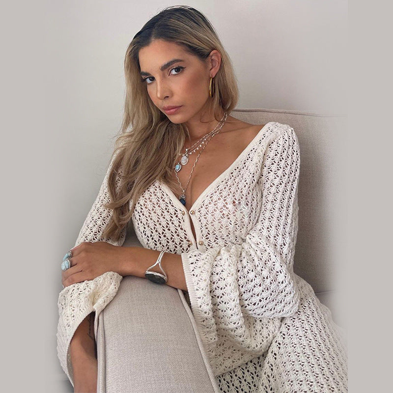 Uveng Summer Beach Dress Solid Color Sexy Dresses