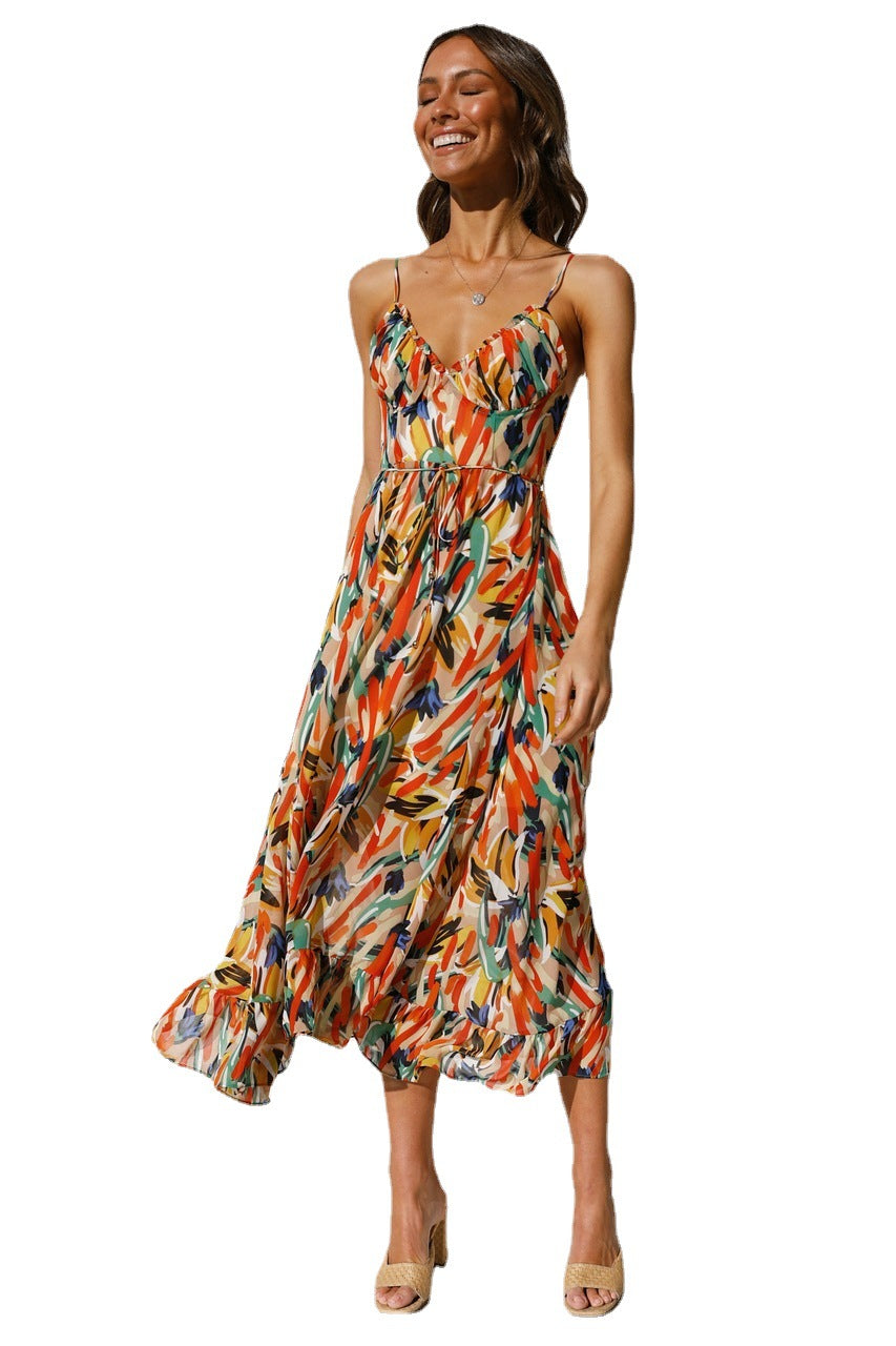 Uveng Summer Printed Ruffle Sleeveless Dress Dresses