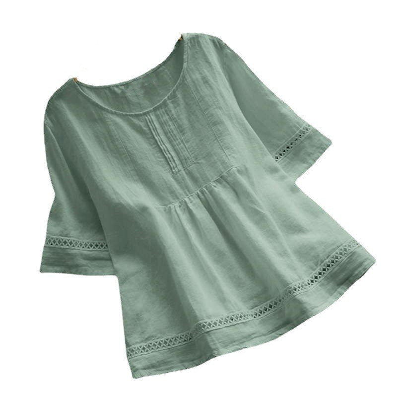 Uveng Summer Solid Color Cotton Linen Half Blouses