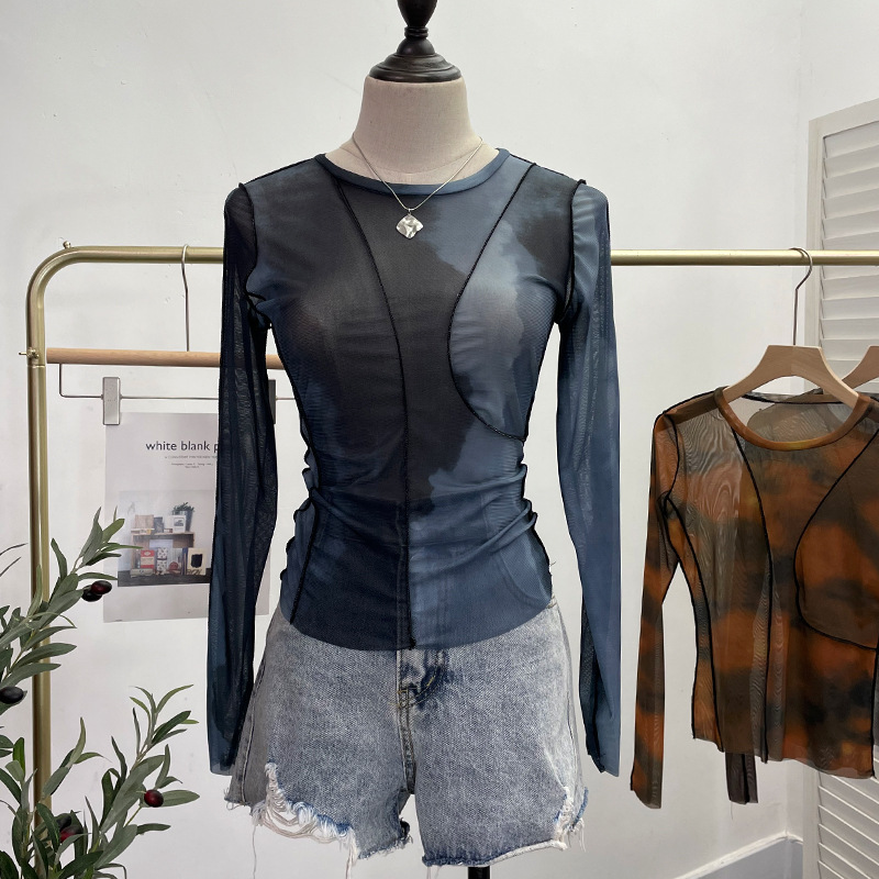 Uveng Sunset Sun Dyed Elastic Mesh Yarn T-Shirt Stacked With Long-Sleeved Top Press Line T-Shirt 8980
