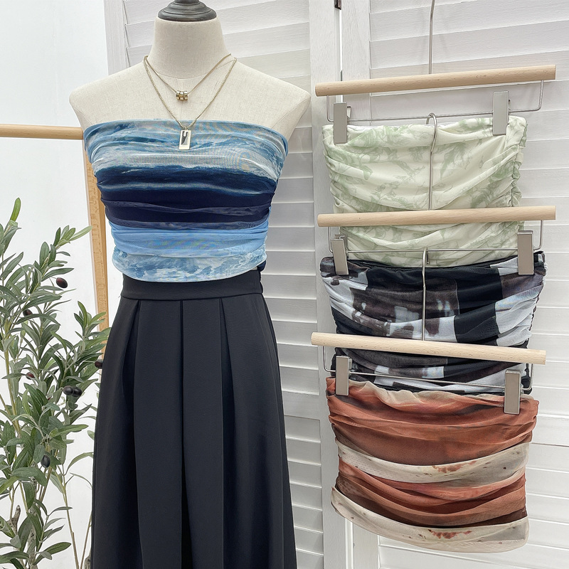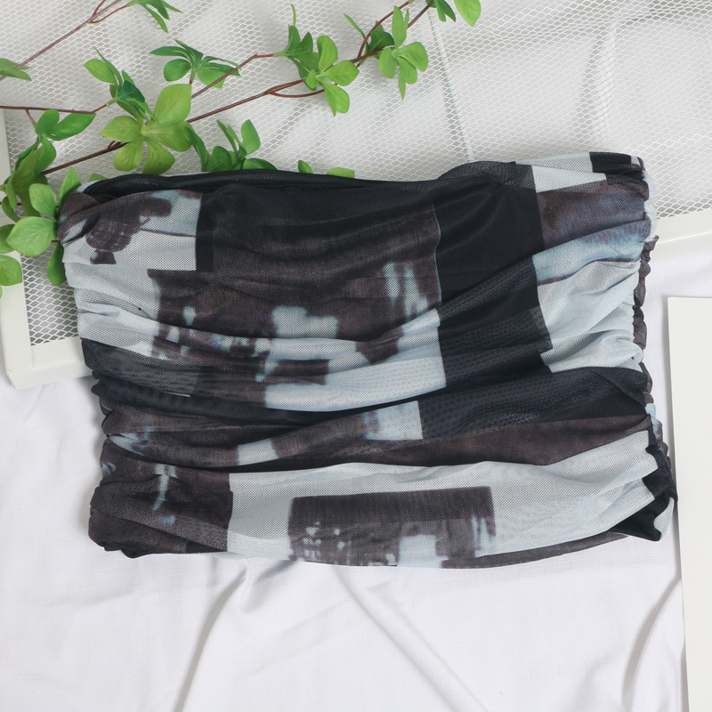 Uveng Sweet Cool Hottie Ultra-Short Umbilical Wrap Chest Sleeveless Coat Yarn Folding Tie Dye Chest Tight Waistcoat 8852