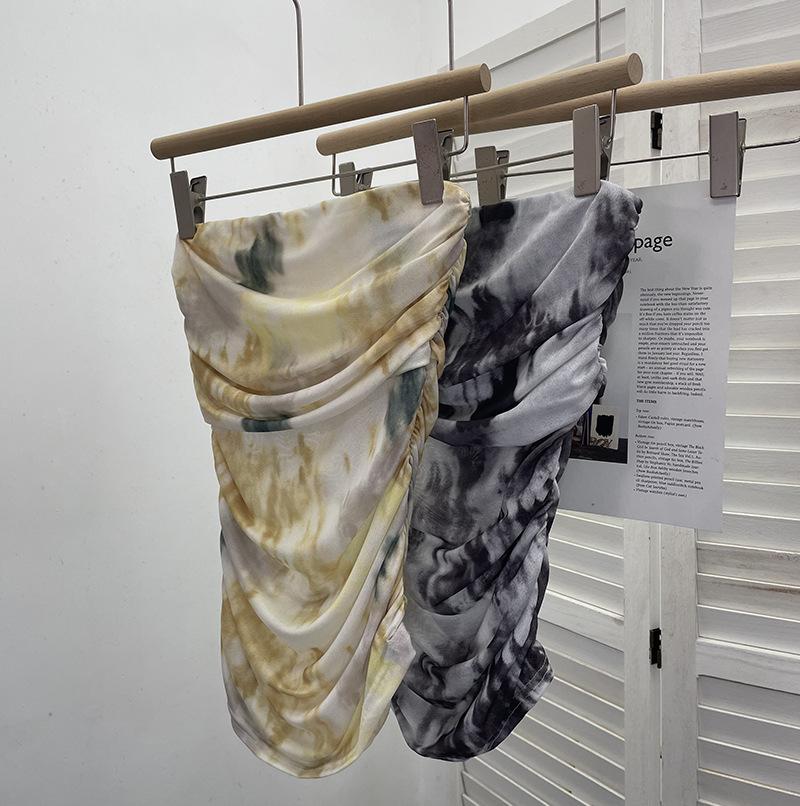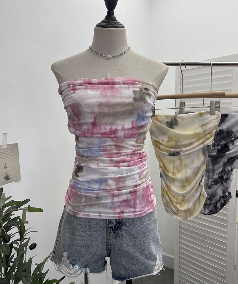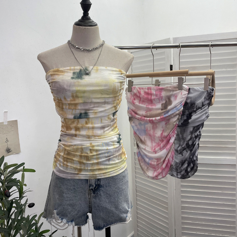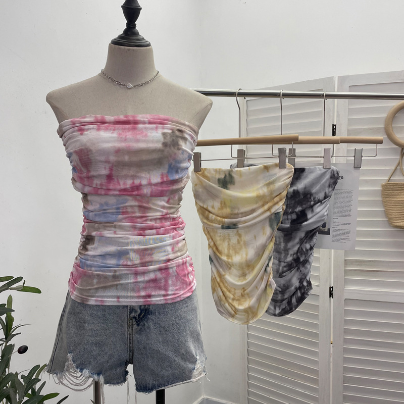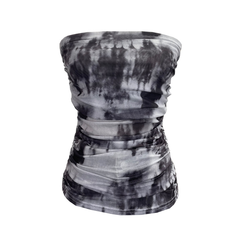 Uveng Thai-Style Splash Ink Dye Mesh Wrap Chest Vest Irregular Stacked Folded Sleeveless Top 9950