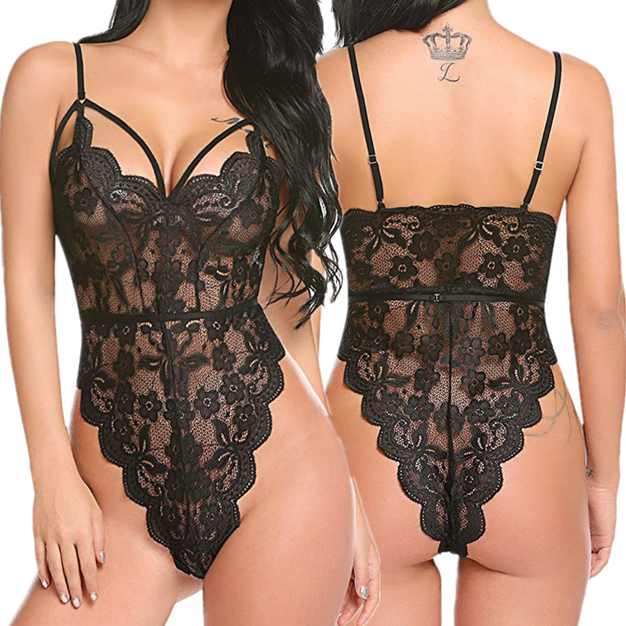 Uveng Thin Lace Lingerie Sexy Tight Bodywear Lady Home Clothes Pajamas