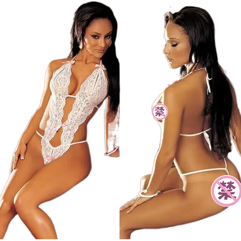 Uveng Three-Point-Style Lingerie Lace Brocing Breast-Through-Lens Sexy Pajamas