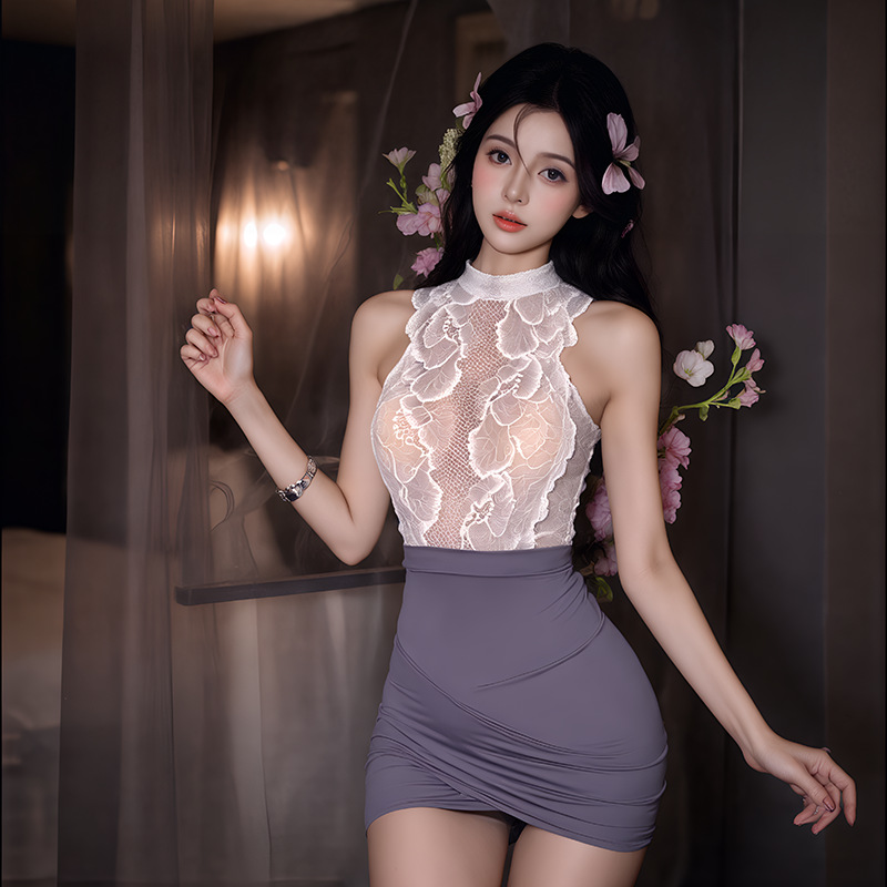 Uveng Tiffin's New Large-Size Flight Attendant Secretary Bag Hip Skirt Passion To Seduce Sexy Hollow Uniform Free Of Small Breast Open File