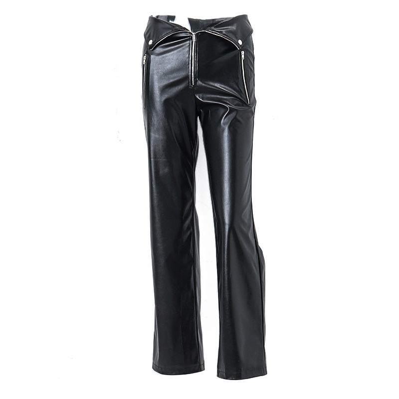 Uveng Uveng 2023 Ins Popular Women's High Waist Straight Loose Wide Leg Casual Pants Leather Pants