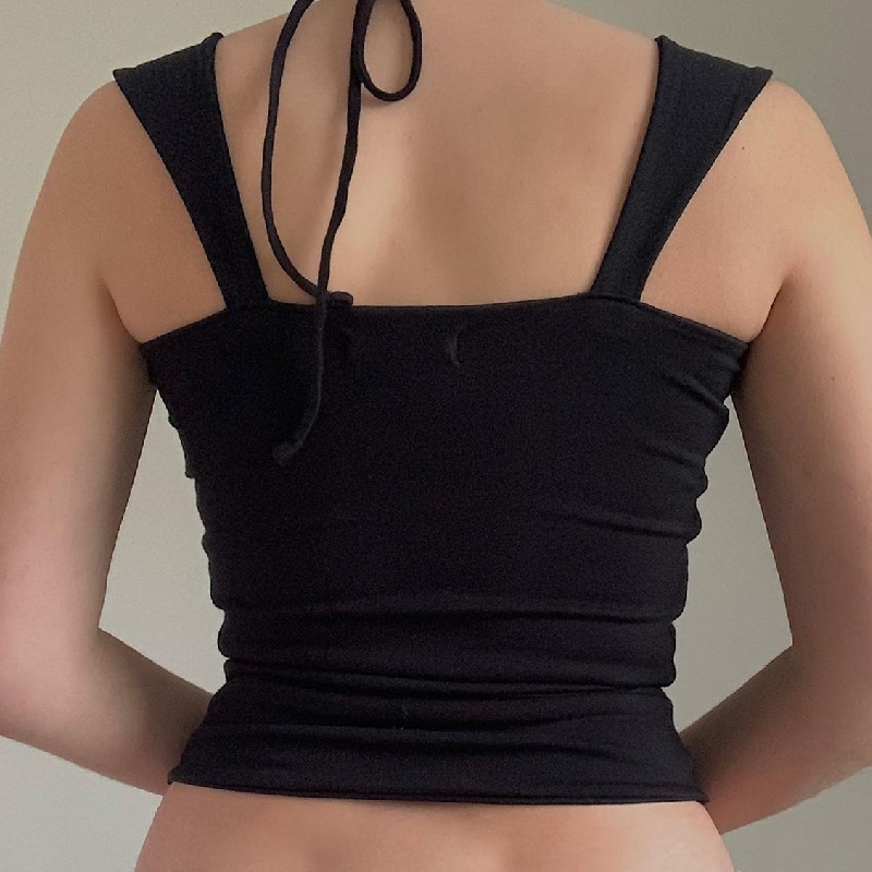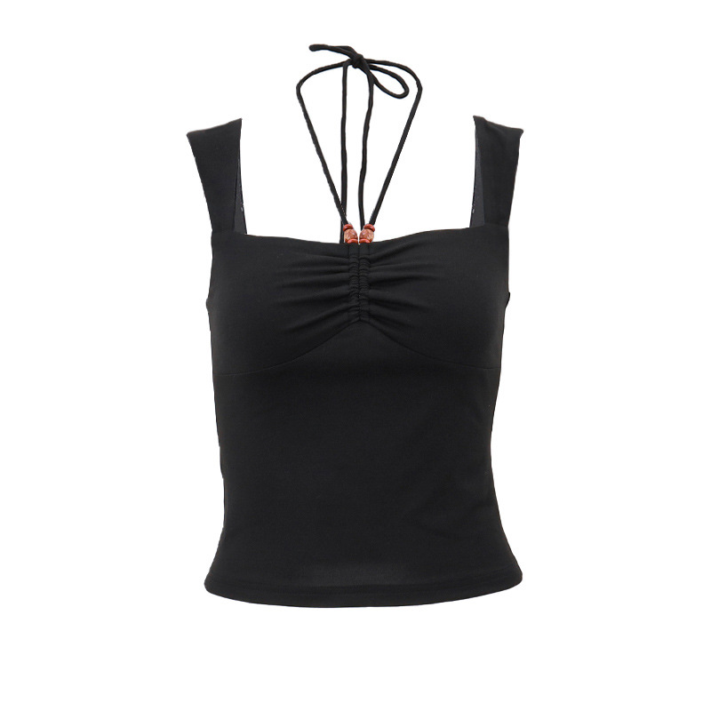 Uveng Uveng 2023 Spring New Hot Style Fashion Hot Girl Hanging Neck Pleated Wrapped Chest Short Style Versatile Solid Color Vest Woman