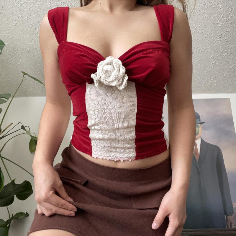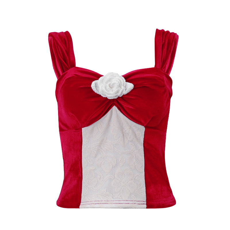 Uveng Uveng 2024 New Fashion Sexy Sweet Spicy Wind French Temperament Short Style Bump Color Sling Vest