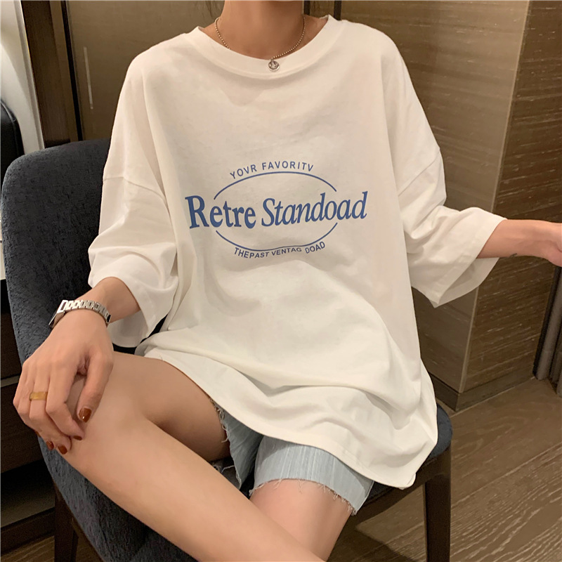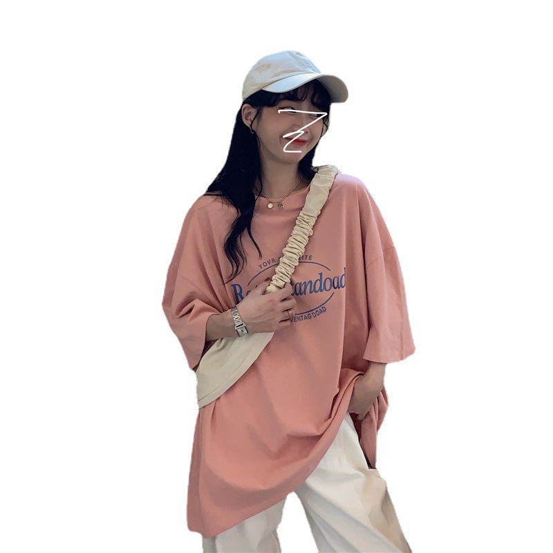 Uveng Uveng 2024 New Korean Version Retro Medium Long BF Wind Loose Large Size Net Red Ins Short Sleeve T Shirt Top Women