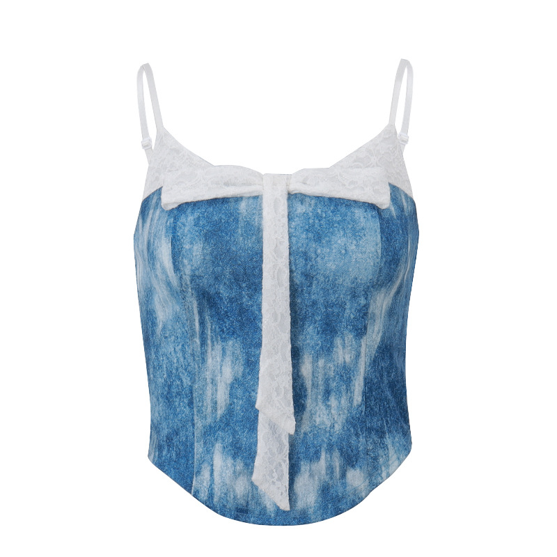 Uveng Uveng 2024 New Women's Fashion Sweet And Spicy Wind Denim Blue Gradient Short Sling Small Vest