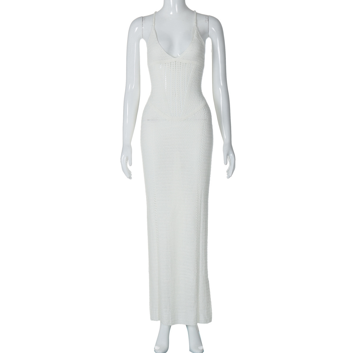 Uveng Uveng 2024 Spring / Summer Women's Temperament Sexy Back Hollow Out Lace Knit Sling Wrapped Hip Dress