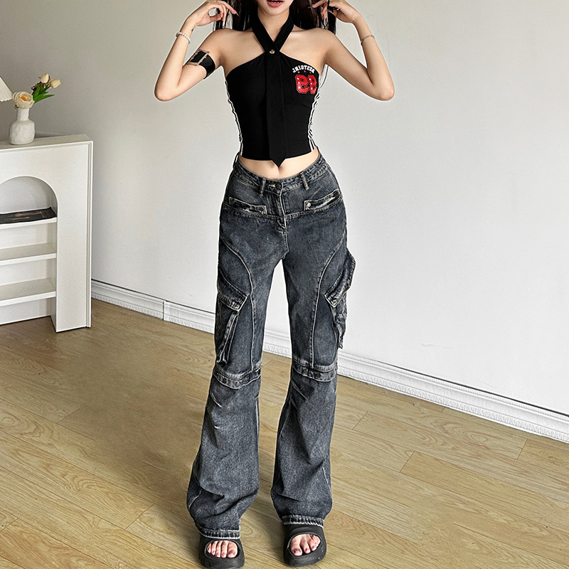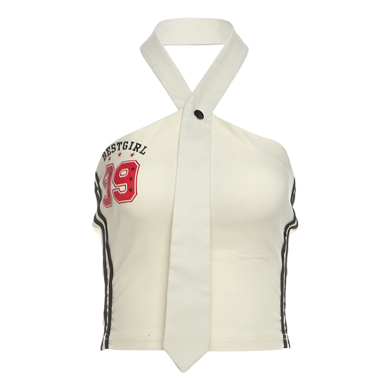 Uveng Uveng 2024 Summer Women's Tie Design Hanging Letter Print Slim Vest