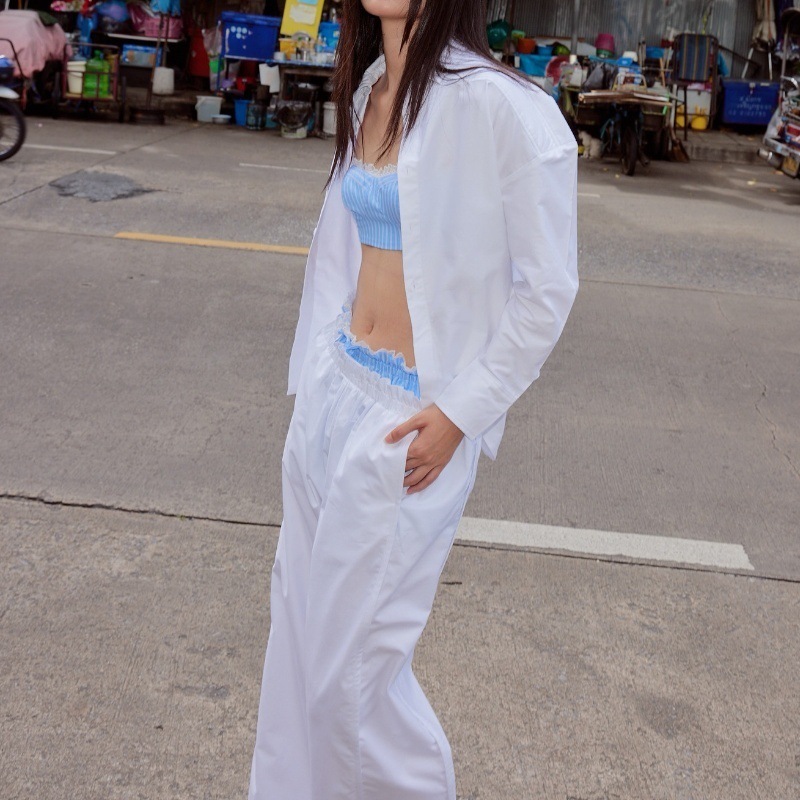 Uveng Uveng 2024 Women's Fashion Casual And Sexy Three-Piece Solid Color Set With Long-Sleeved Shirt And Wide-Leg Pants