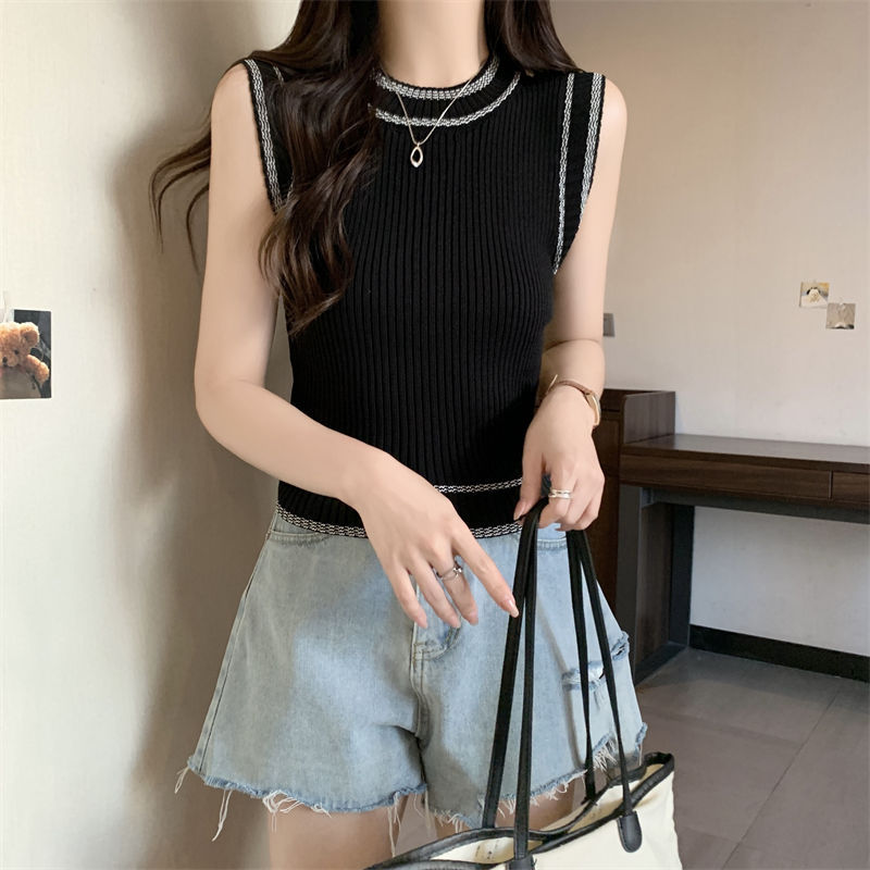 Uveng Uveng And Spicy Short Black Sexy Vest Women's Summer New Casual Round-Neck T-Shirt Thin Sleeveless Top