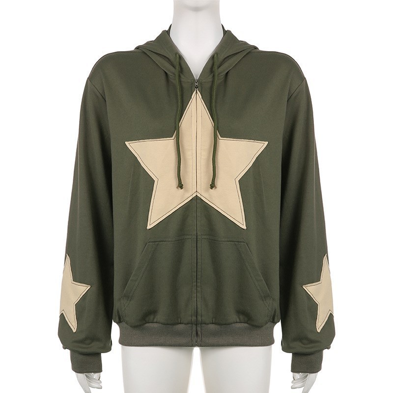 Uveng Uveng And Winter New Add Velvet And Thick Hoodie Men And Women Star Zipper Hat Cardigan Coat