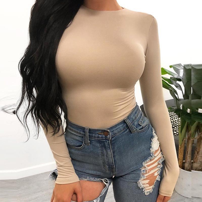 Uveng Uveng Autumn New Slim Sexy Jumpsuit Long Sleeve With Chest Sexy T-Shirt Female Ins