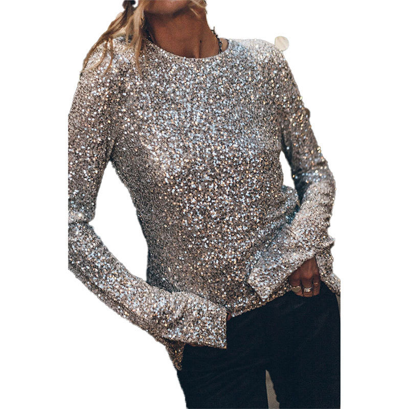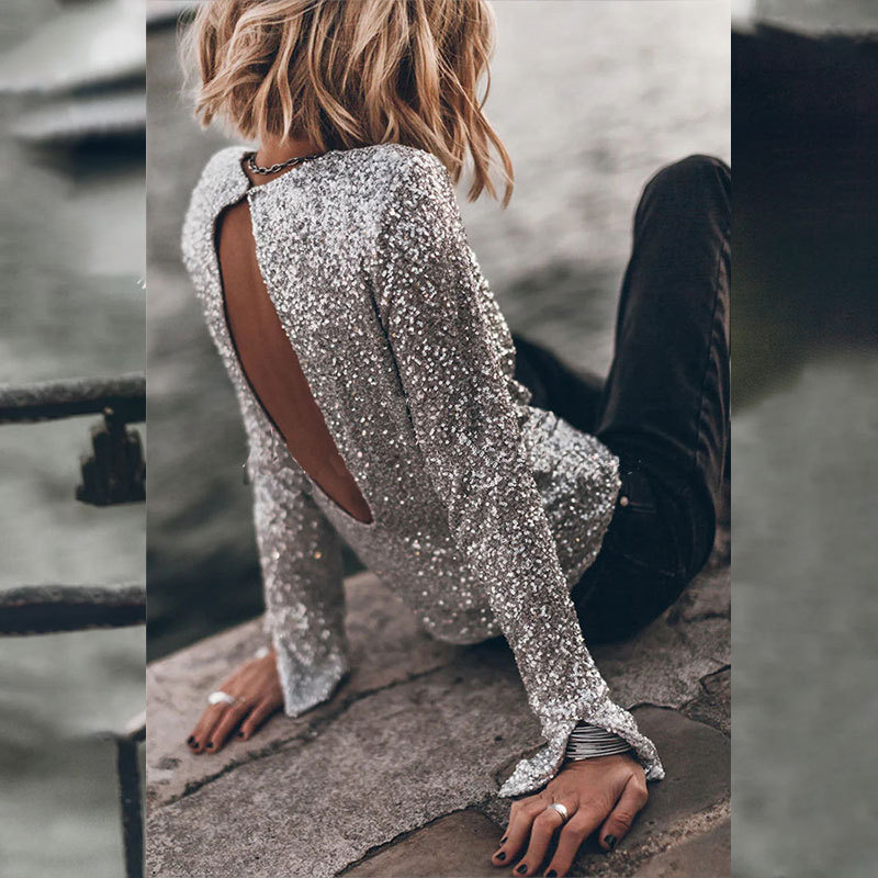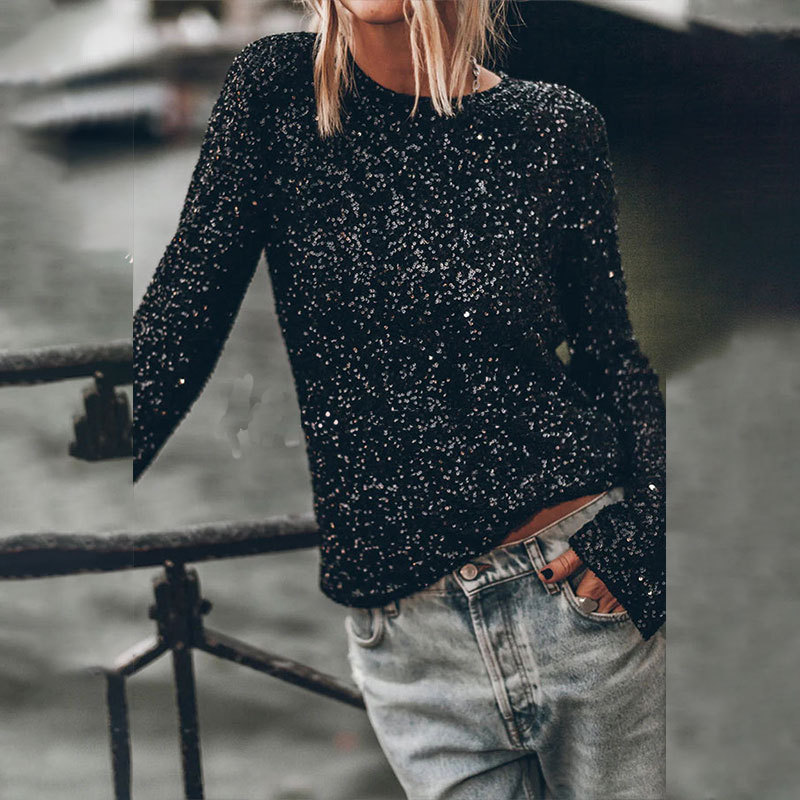 Uveng Uveng Autumn Women's Street Solid Color Round Collar Back Hollow Sequin Jacket 661