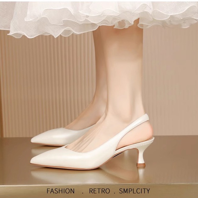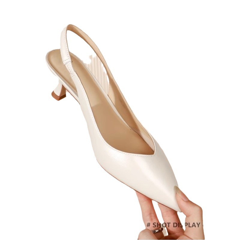 Uveng Uveng Baotou Sandals Women 2024 Summer New Pointed Head With High Heels White Single Shoes Fairy Shoes With Skirt