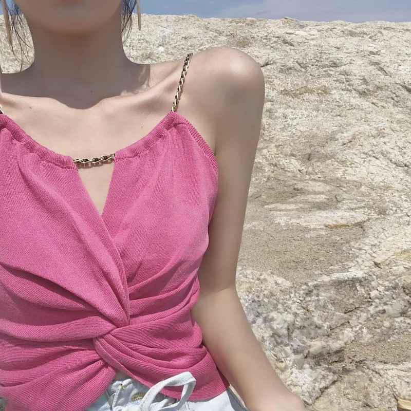 Uveng Uveng Beauty Back-Up Shoulder Female Summer Short-Colored Bum Sexy Umbilly Wear Wrapped Chest Chic Sling Vest Hottie