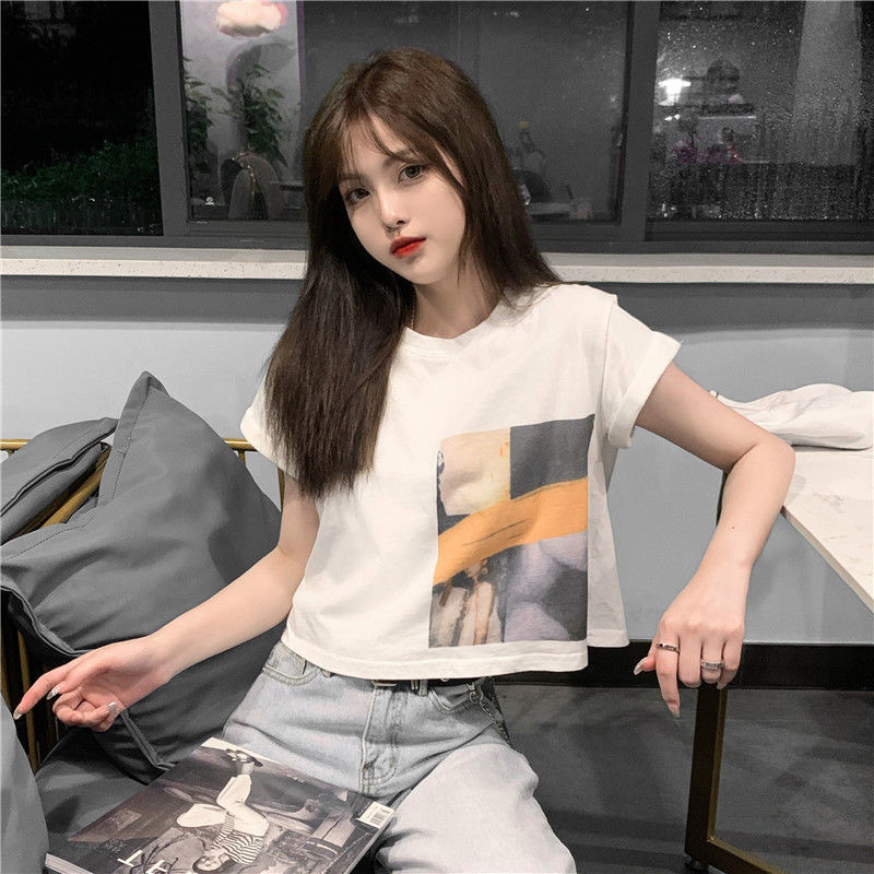 Uveng Uveng Celebrity Short-Sleeved T-Shirt Female Jacket Short Style Student Korean Version Loose 2024 Summer New Heart Machine Crop Ins Tide