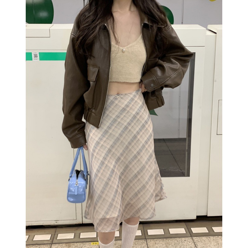 Uveng Uveng Chic Spring French Vintage High Waist Cover Across The Bing Lattice Tidive Dress Fishtail Skirt Half-Dress Girl