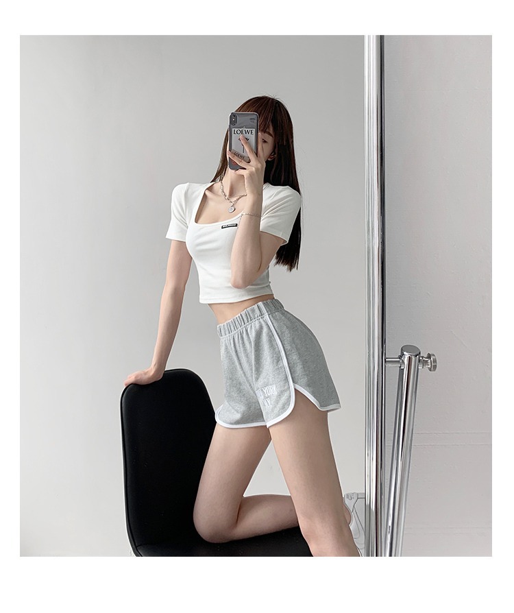 Uveng Uveng Collar Dew Collarbone Slim Bottom Shirt 2024 Summer New Short-Sleeve Crop Cord T-Shirt Student Short Jacket Female Ins