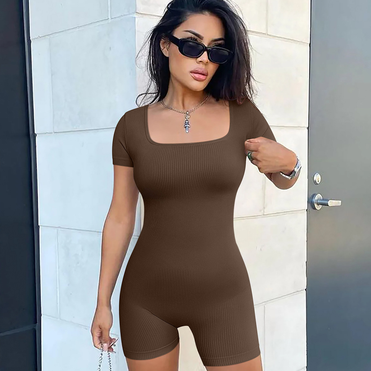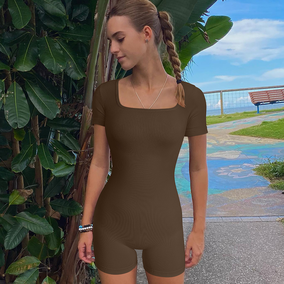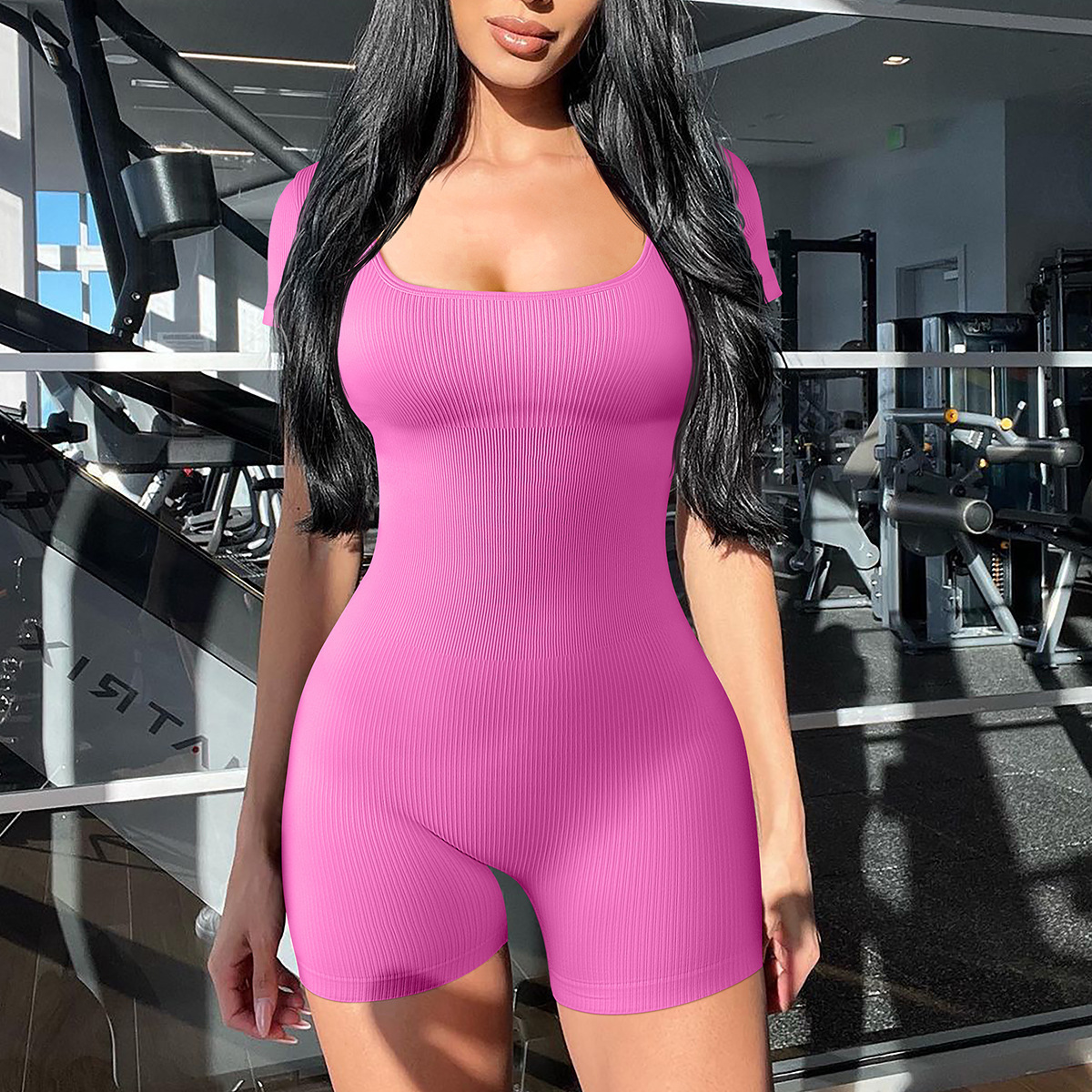 Uveng Uveng Collar Solid Color Short Sleeve Jumpsuit High Waist Sports Fitness Sexy Jumpsuit Women's Clothing
