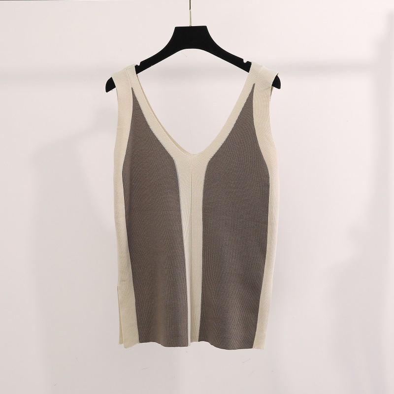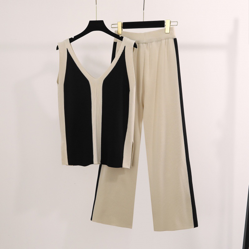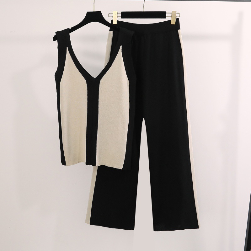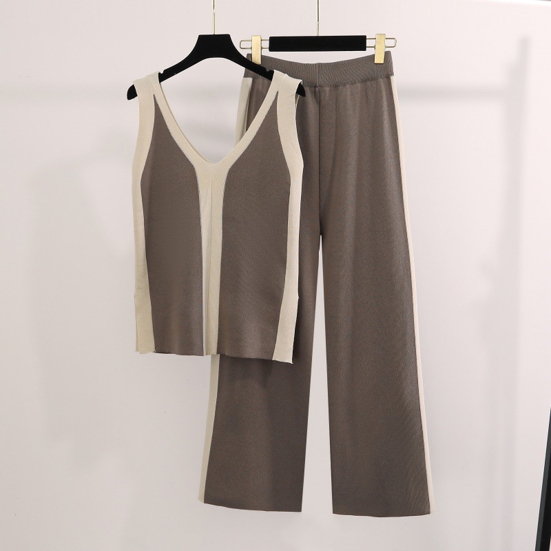 Uveng Uveng Color Before And After The V-Neck Vest Knitted Fork Tops Knitted Knitted Two-Piece Trousers Knitted Two-Piece