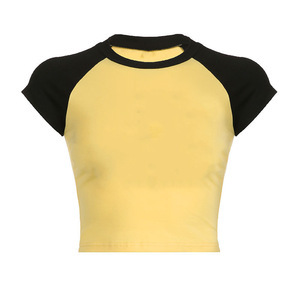 Uveng Uveng Color Thread Rotator Sleeve T-Shirt Women's Short Crop Tight Thin Shirt Short Sleeve Casual