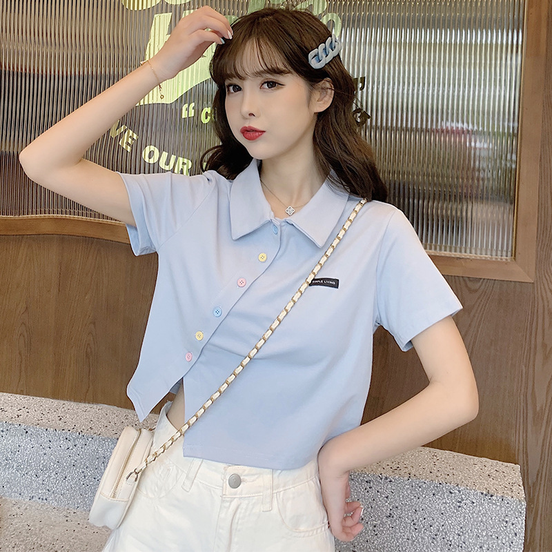 Uveng Uveng Cotton 2024 Summer New Polo Shirt Short-Sleeved T-Shirt Female Slim High Waist Lapel Short Style Student Jacket Tide