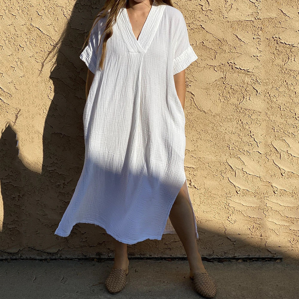 Uveng Uveng Cotton Crepe Beach Smock Bohemian Beach Dress Bikini Swimsuit Sun Tan