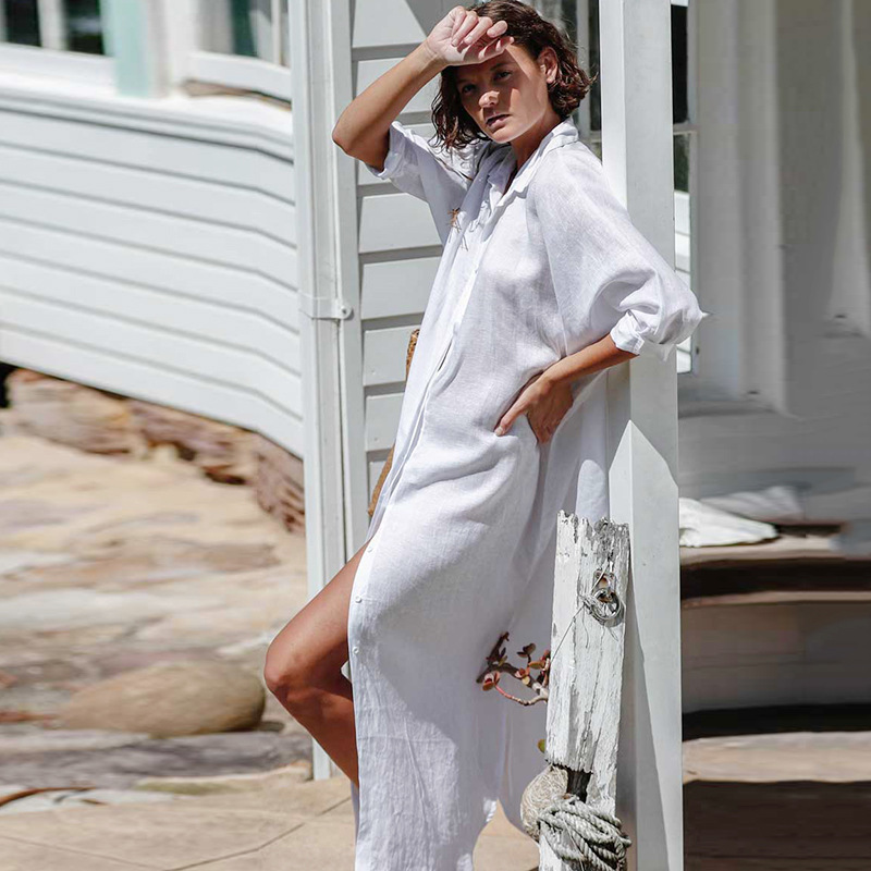 Uveng Uveng Cotton Loose Shirt Type Long Cardigan Bikini Swimsuit With Sunscreen Smock Vacation Beach Coat Female
