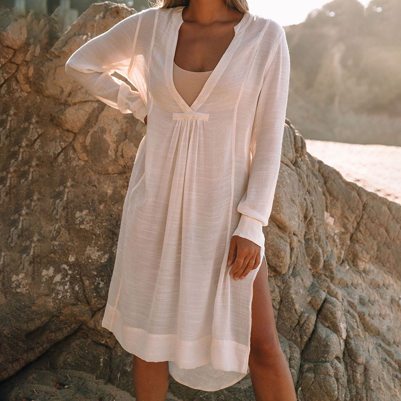 Uveng Uveng Day Silk Bamboo Set Hood Sunscreen Beach Coat Seaside Vacation Bikini With Swimsuit Hood Woman