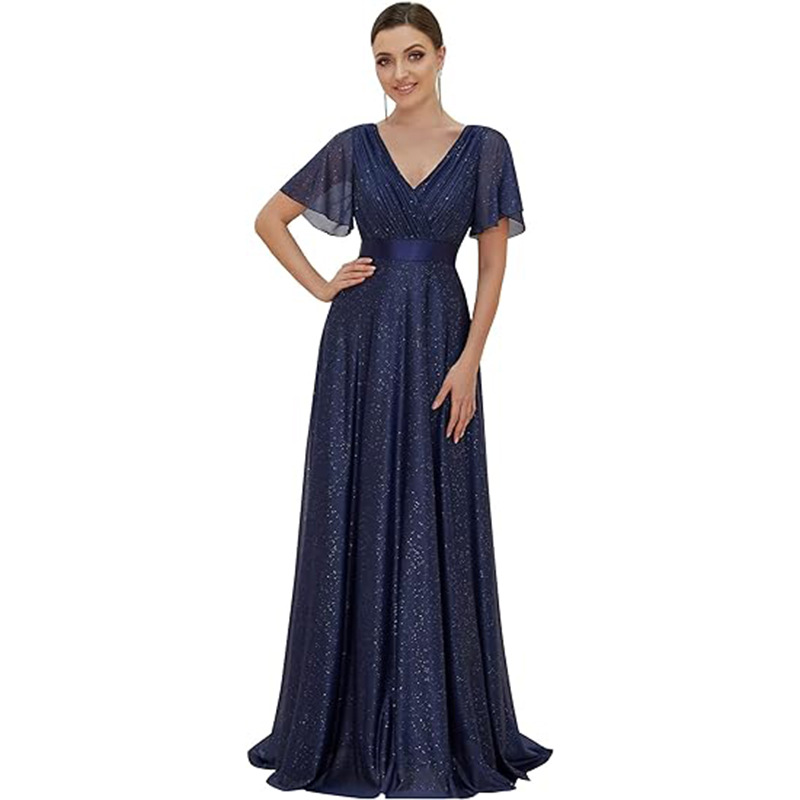 Uveng Uveng Dress V-Neck Long Large-Size Chiffon Banquet Bridesmaid Dress Horn Sleeve Dress Dress Dress Dress