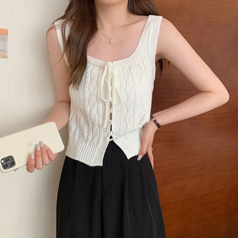 Uveng Uveng Fashion Fashion Short Strap Design Knitted Sling Vest New Niche Sleeveless Top