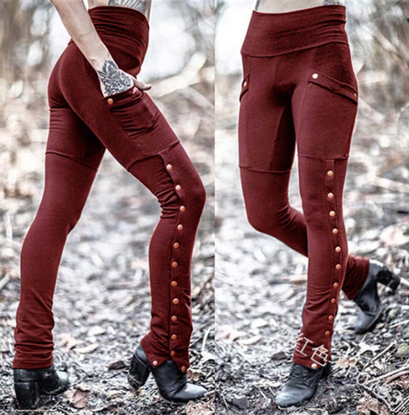 Uveng Uveng Fashion Handsome Lady Rivet Open Fork Design Pedal Trousers Emboldel Pocket Decor Pencil Pants
