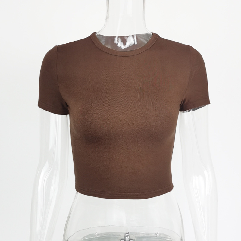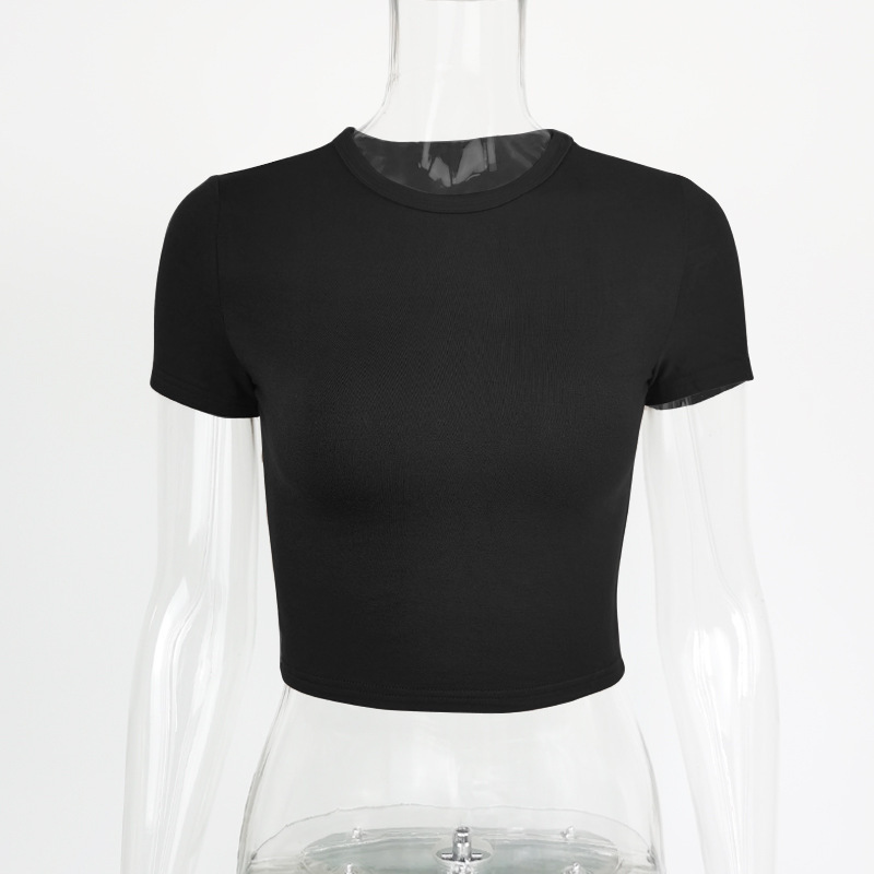 Uveng Uveng Fashion Solid Color Short Crop Casual Jacket Elastic Slim Round Collar T Shirt Women