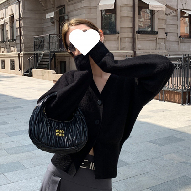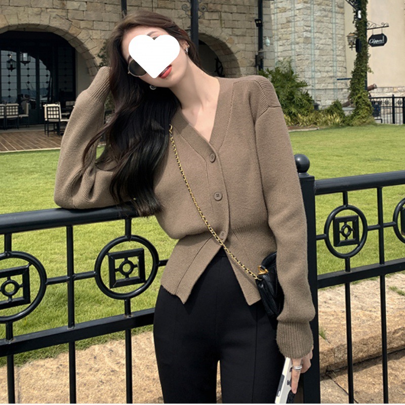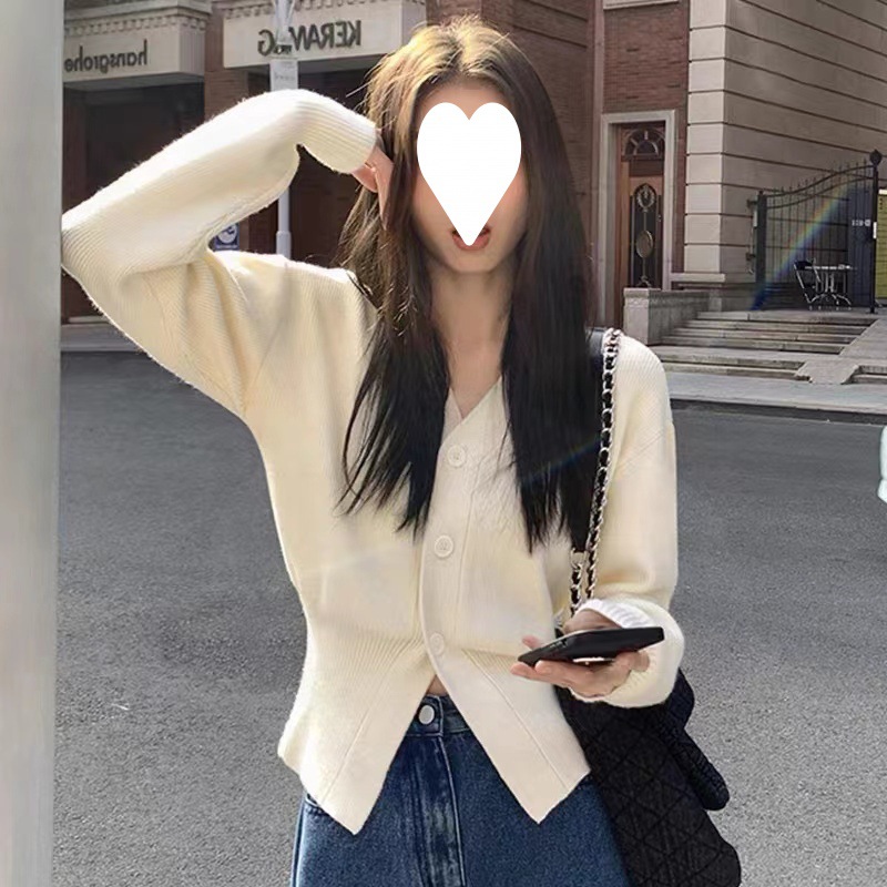 Uveng Uveng Gentle White V-Neck Knitted Cardigan Women's Spring And Autumn High-End Lazy Wind To Collect Short Sweater Jacket Winter