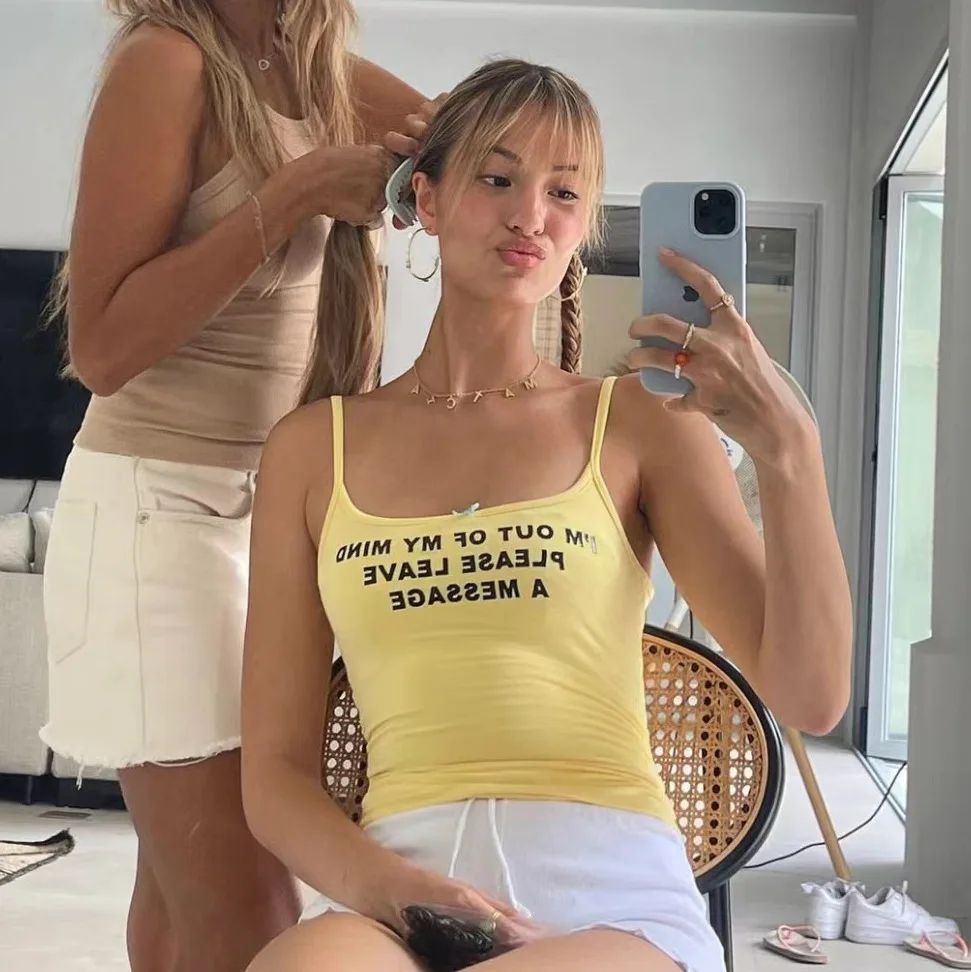 Uveng Uveng Girl Style Letter Print Sleeveless Short Vest Retro Top Women's Summer New