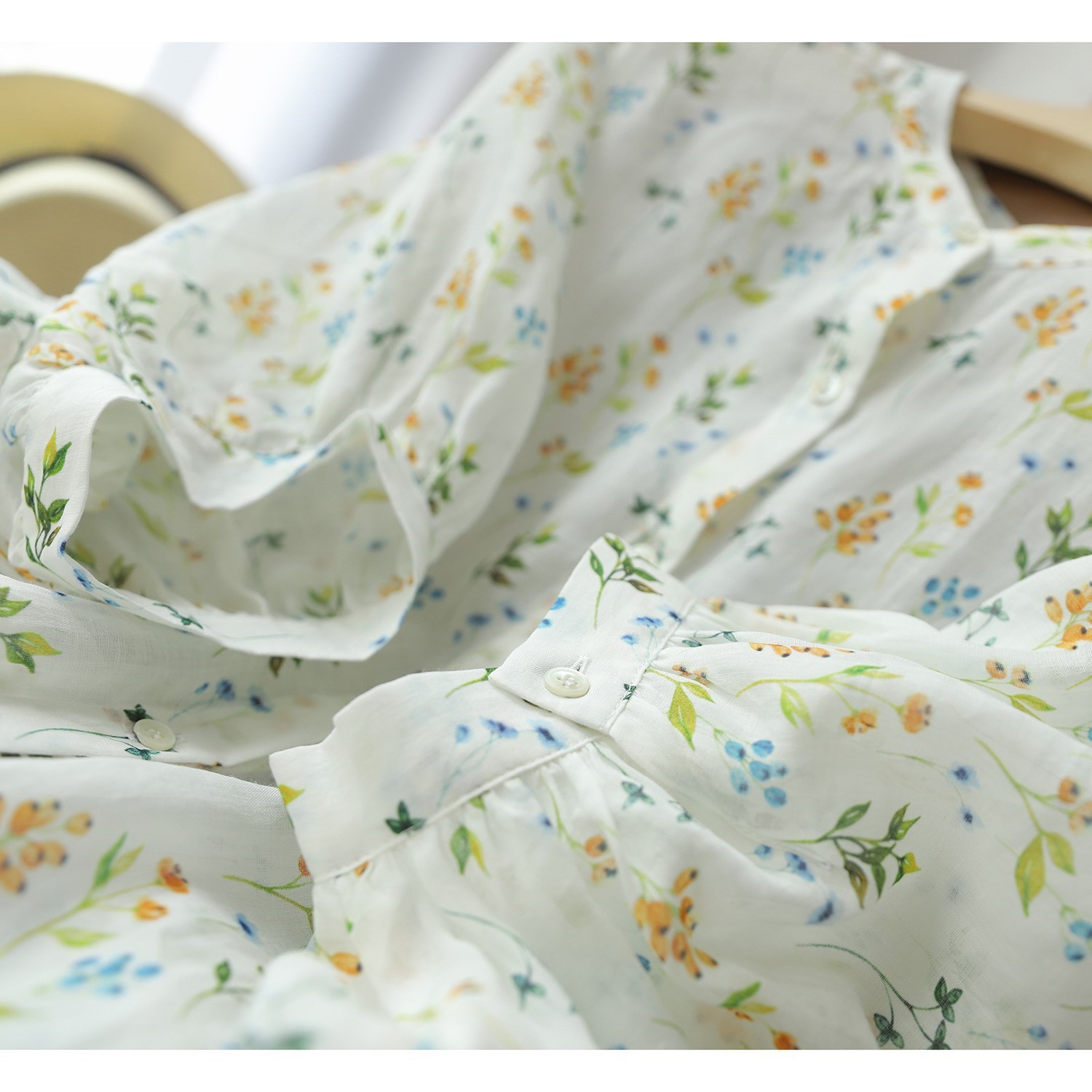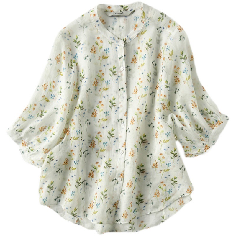 Uveng Uveng Goods Export Counter Original Single Tail Goods Elegant Age-Old Bubble Sleeve Print White Shirt Top Woman