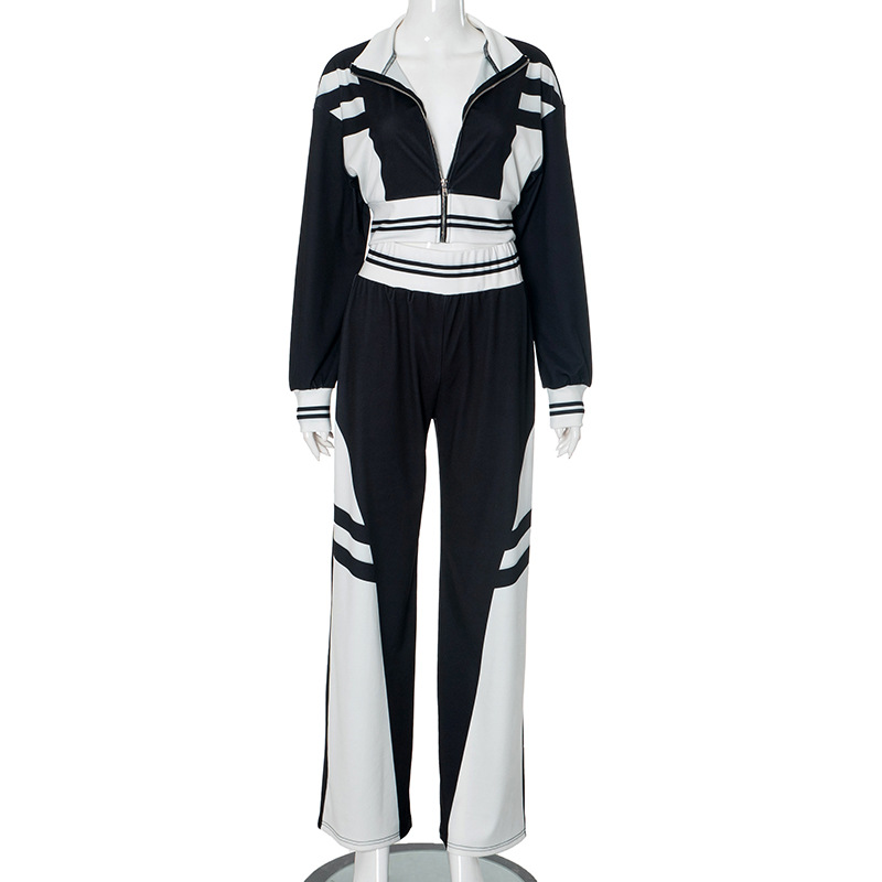 Uveng Uveng Has K24ST398 Women's Clothing 2024 Autumn Fashion Trend Hot Girl Black And White Trousers Suit