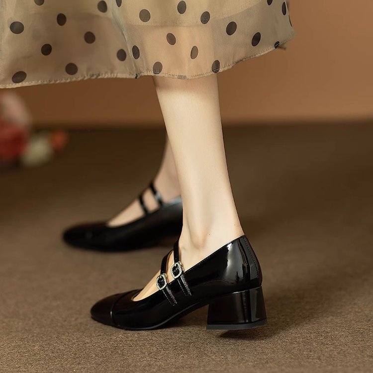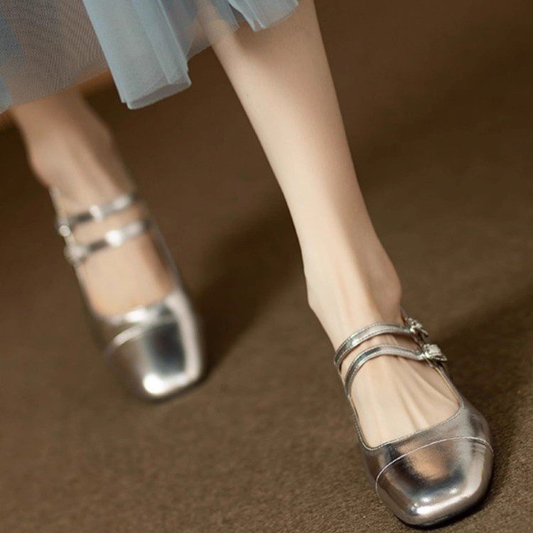 Uveng Uveng Heel High-Heeled Women's Skirt Temperament Silver Single Shoes 2024 New Spring And Autumn French Mary Jane Small Leather Shoes