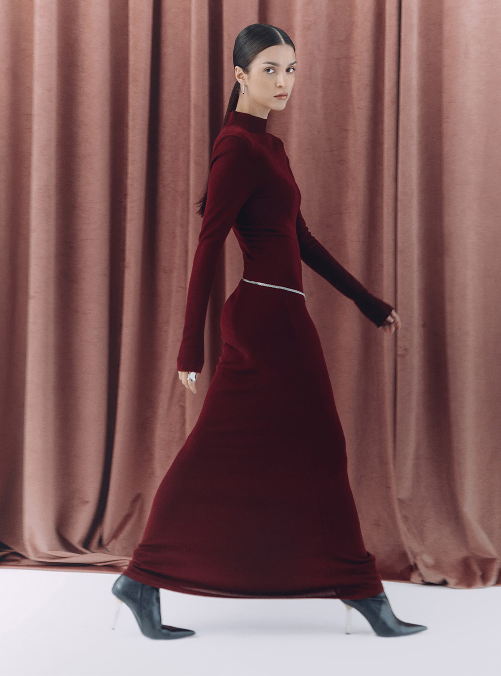 Uveng Uveng High-Collar Dress Knitted One-Step Skirt Solid-Colored Bottom Dress 2024 Autumn And Winter Sweater Skirt