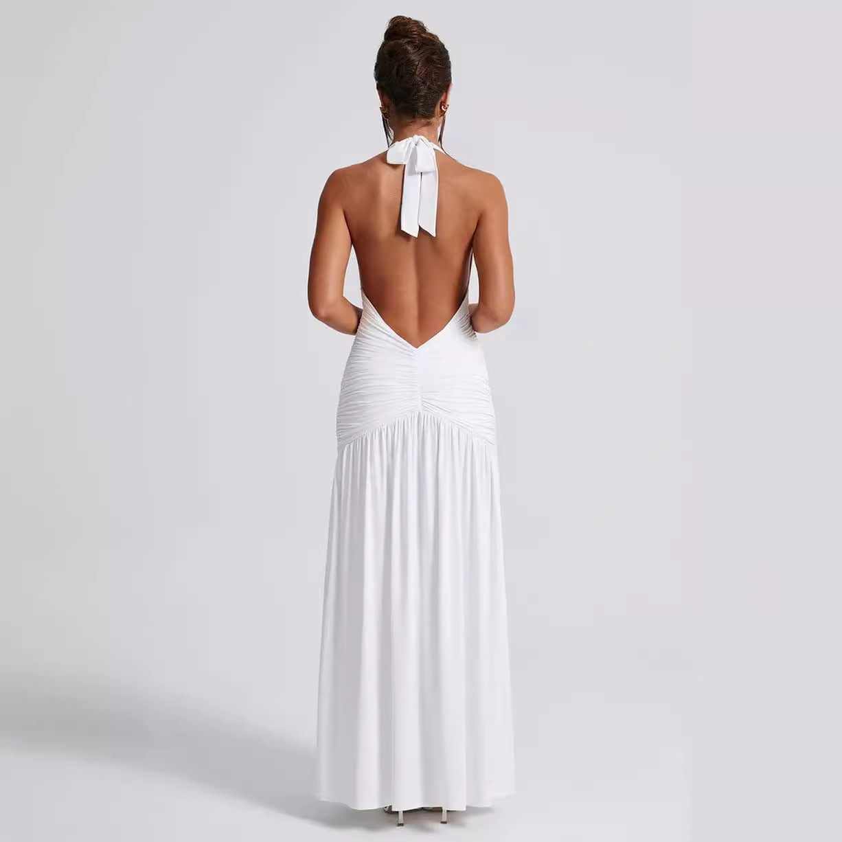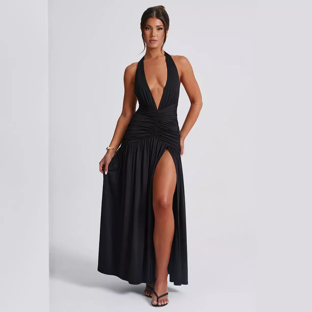 Uveng Uveng Ins Dress Spring And Summer Sexy Hot Girl Tie V Neck Tie Open Back Slit Stylish Temperament Dress