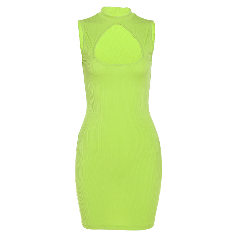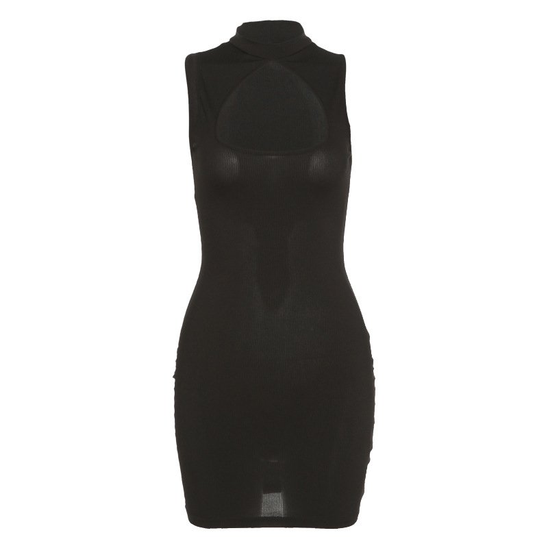 Uveng Uveng INS Summer Women's Fashion Sleeveless Round Collar Sexy Hollow Out Slim Hip Wrap Dress