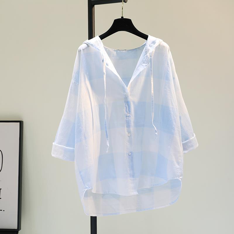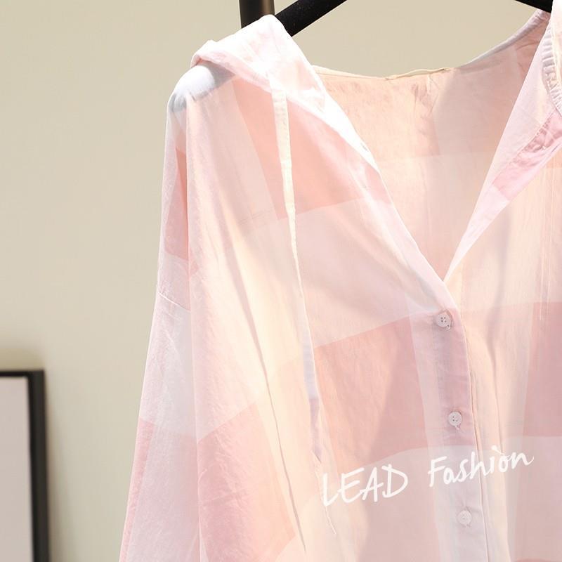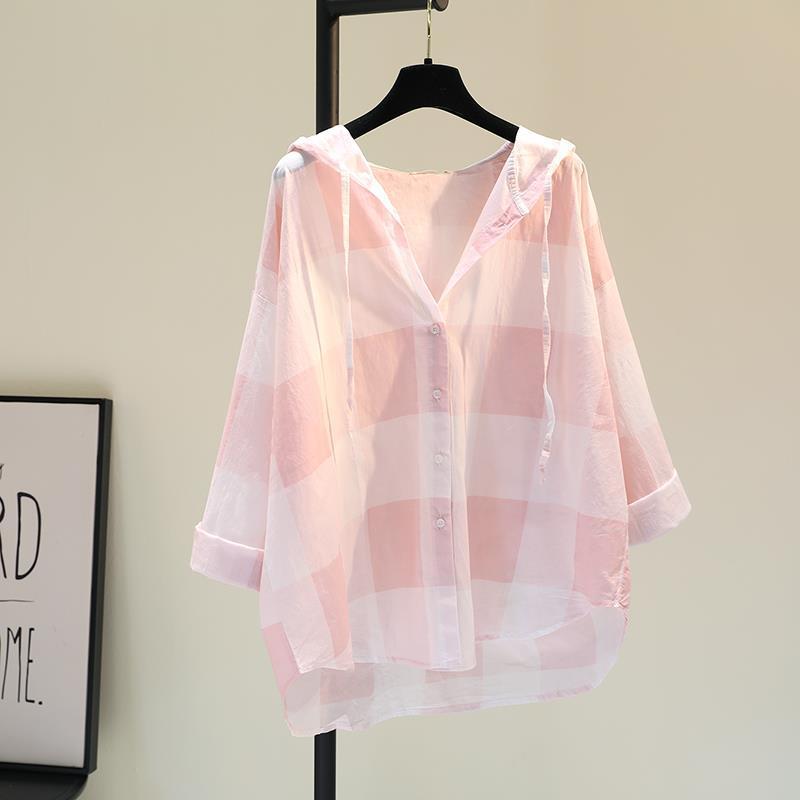 Uveng Uveng Lattice Hooded Sunscreen Woman 2025 Spring And Summer New Korean Version Of Loose Casual Shirt Thin Top Card