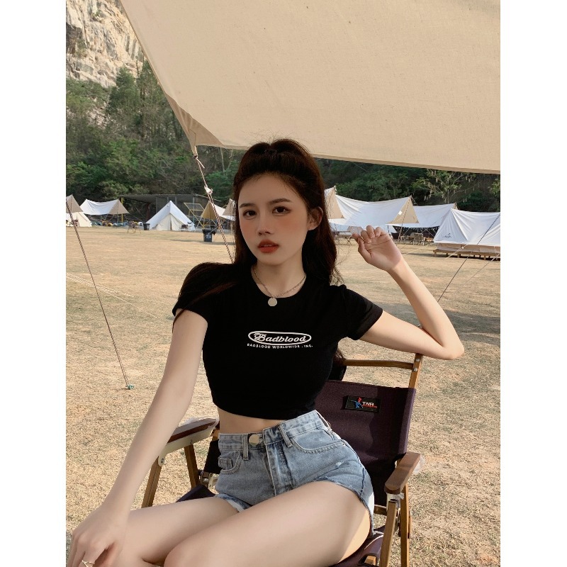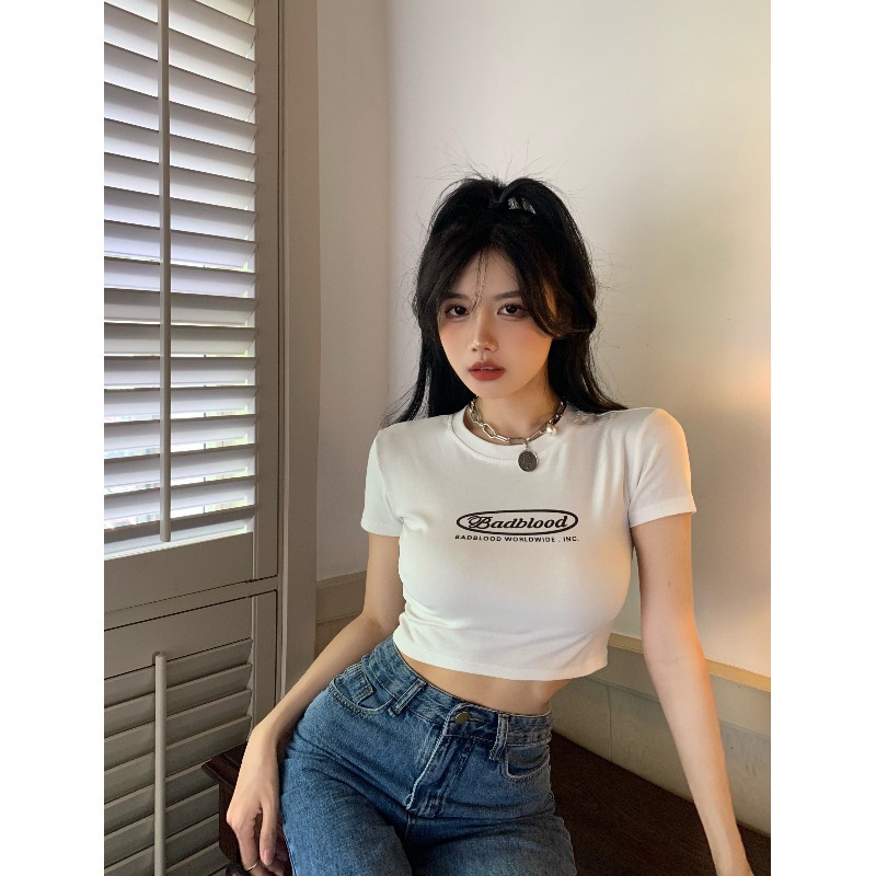 Uveng Uveng Letter Print Short T-Shirt Women's Summer 2024 New Slim Slim Short-Sleeved Top