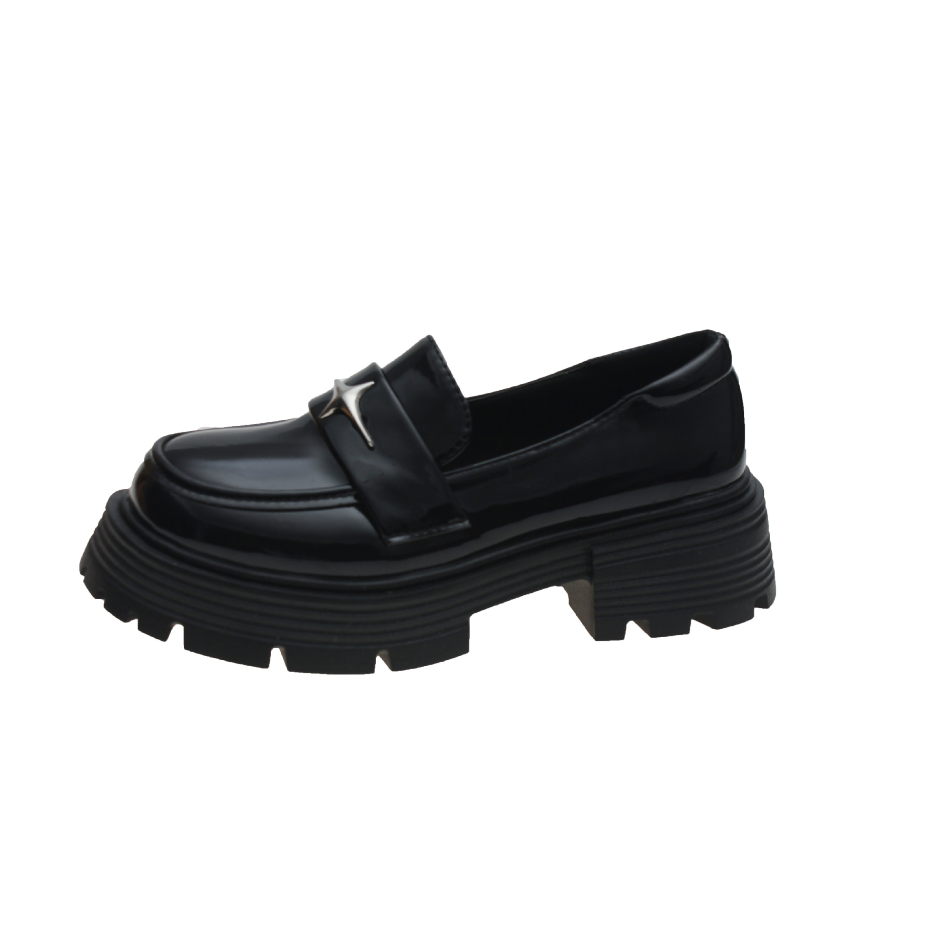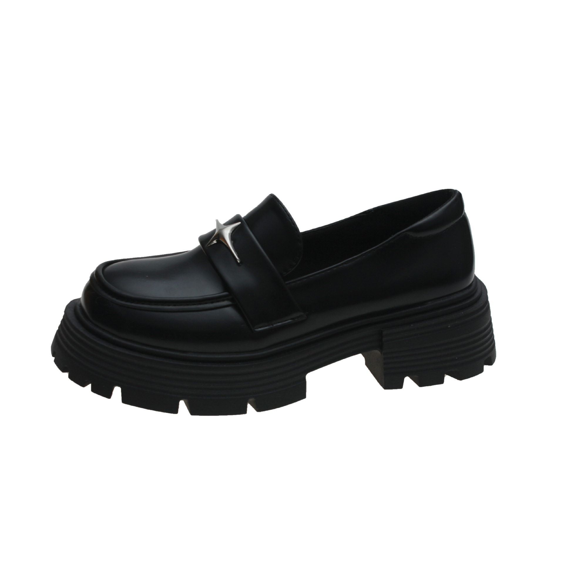 Uveng Uveng Little Leather Shoes Female 2023 New Platform Pine Cake Black Bright Leather With Skirt Jk One Foot Pedal Loafers