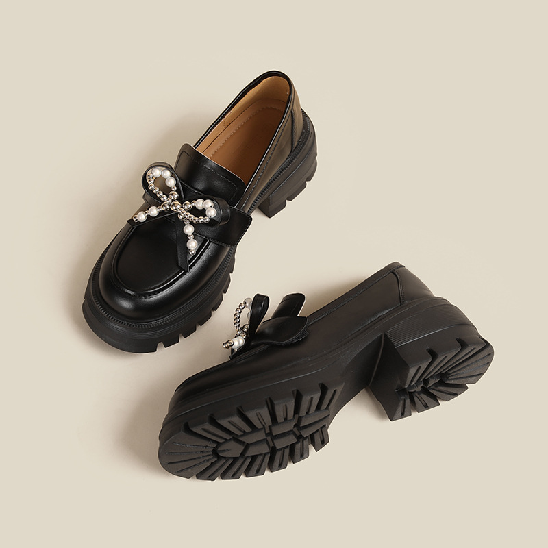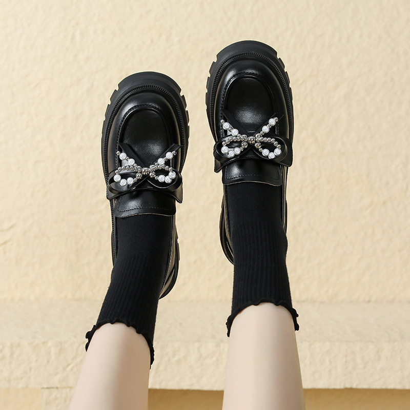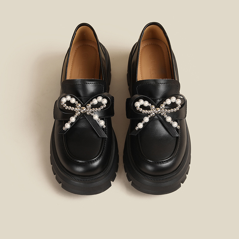 Uveng Uveng Loafers Women Spring And Autumn Skirt A Foot Pedal British Style Small Leather Shoes Bow Casual Single Shoes